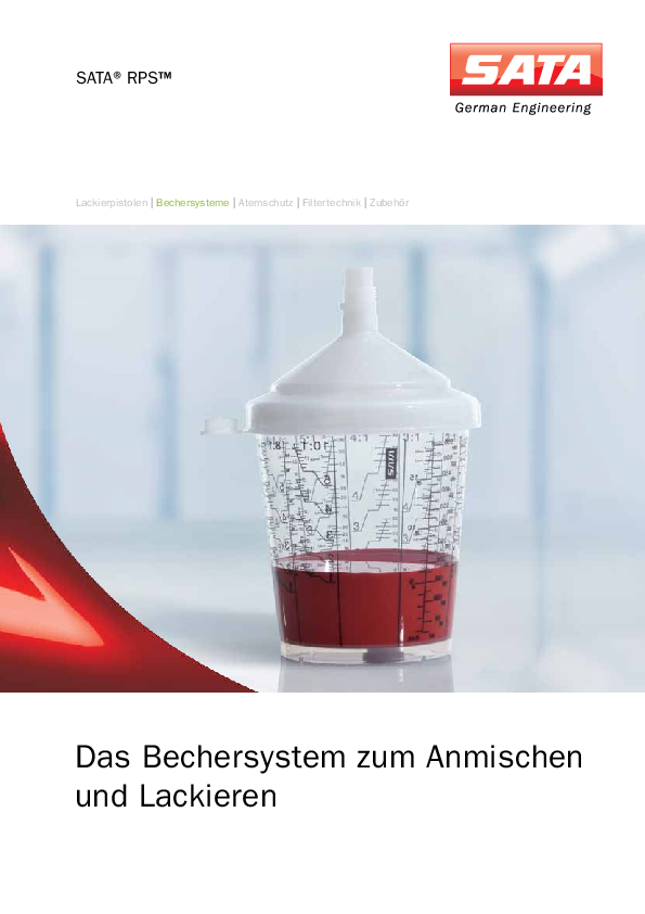 SATA RPS (Rapid Preparation System) ist das Bechersystem für Lackierbetriebe, denen es auf perfekte Lackierergebnisse und hohe Wirtschaftlichkeit ankommt. SATA RPS erleichtert Lackierern die Arbeit, steigert ihre Produktivität deutlich und reduziert den Verbrauch and Reinigungs- und Lösemitteln drastisch. Die besonderen Vorteile von SATA RPS liegen